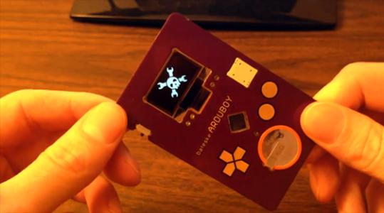 Arduboy由印刷电路板(PCB)制成,包含一个微型OLED屏幕和微控制器,大概相当于几张真正的名片摞起来那般厚。另外,它还内嵌了微型扬