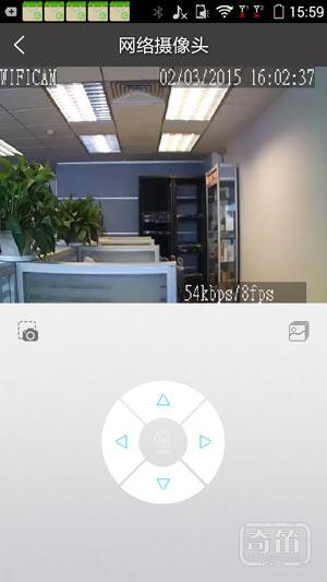 点击首页摄像头可以即可以看到实时的监控状况,APP提供虚拟方向键支持即时的上下左右旋转,多方位监控。摄像头还支持远程拍照或者视频录制,存放目录可路由器页端进行读取。